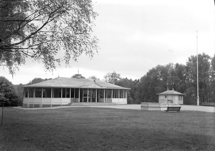 Enligt noteringar: "Stora dansbanan och kiosken i Folkparken. Parken byggdes av Munkedals bruk och invigdes 1931, varpå den överlämnades till Folkparksföreningen." (BJ)