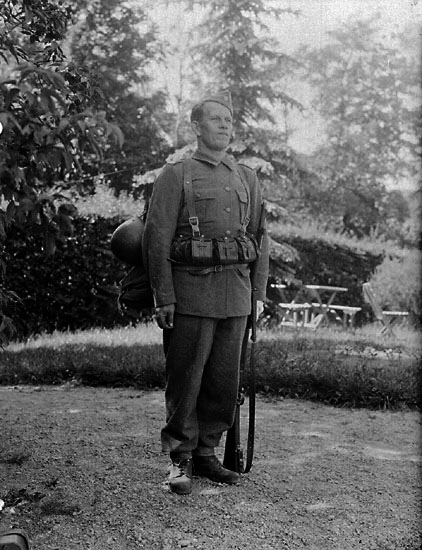 Enligt senare noteringar: "Man i uniform m. gevär m/96, trol. hemvärnsman." (BJ)