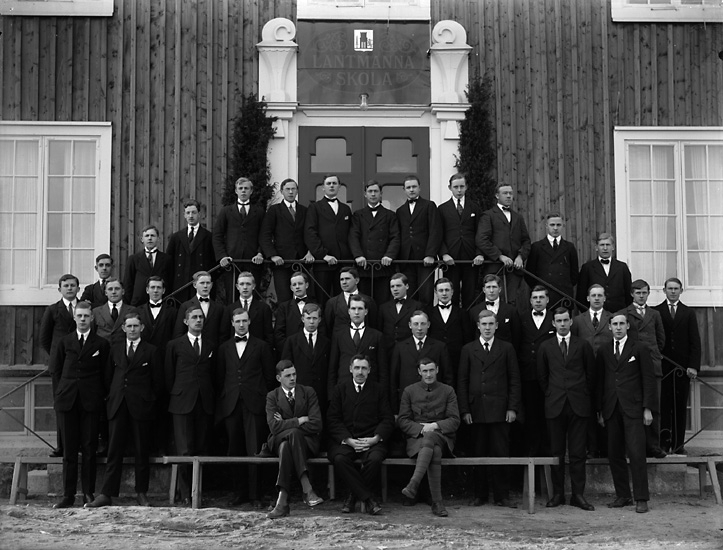 Enligt senare noteringar: "Lärare och elever på huvudbyggnadens trappa.
