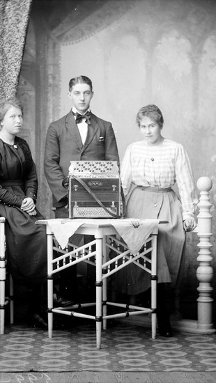 Ateljefoto, Spel-Erik med damer och dragspel