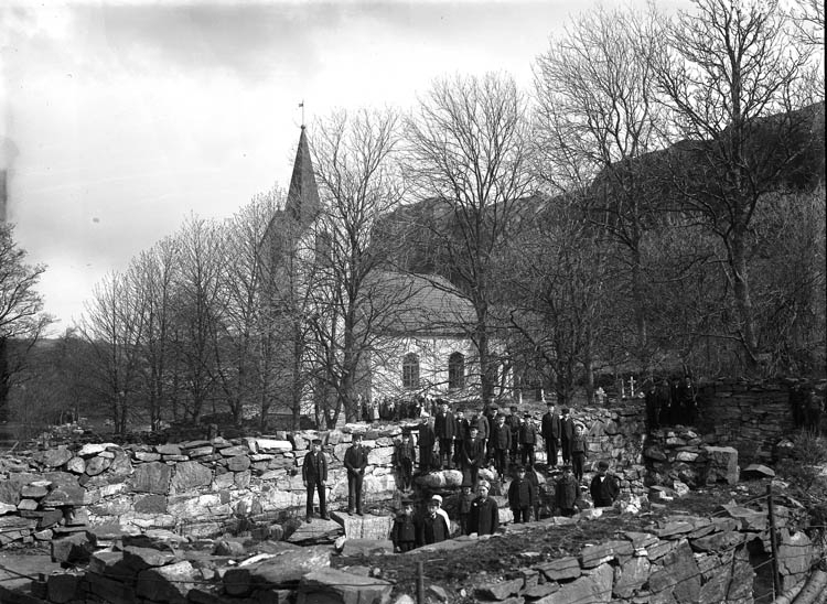 Enligt tidigare noteringar: "Dragsmarks klosterruin och kyrka, gruppbild på besökande ungdom troligen från någon skola."