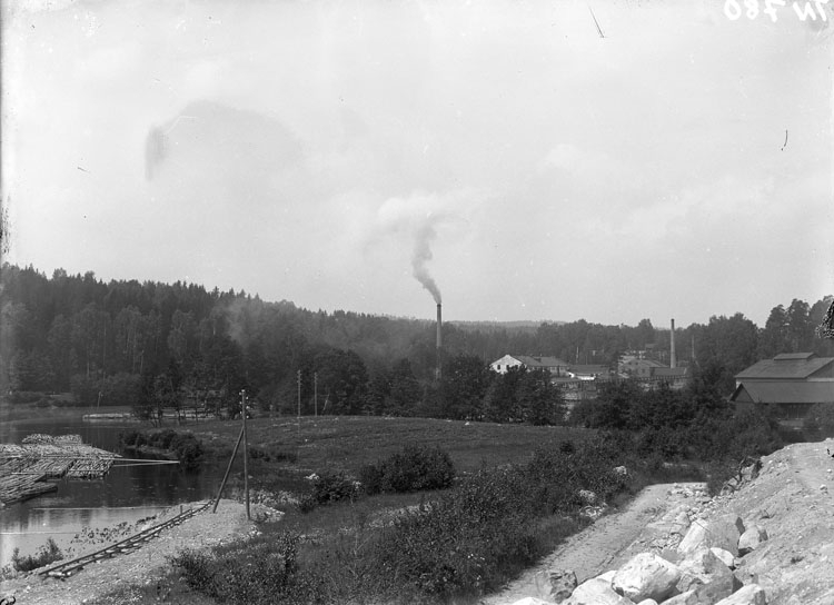 Enligt tidigare noteringar: "Industri vid kanal, i förgrunden till vänster virkesmagasin i vatten."