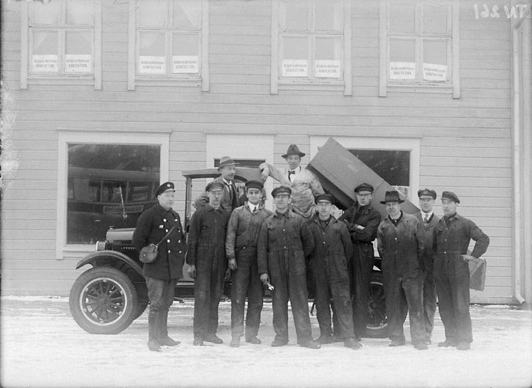 Enligt senare noteringar: "Lastbil på gata i Uddevalla. Flera personer framför bilen."