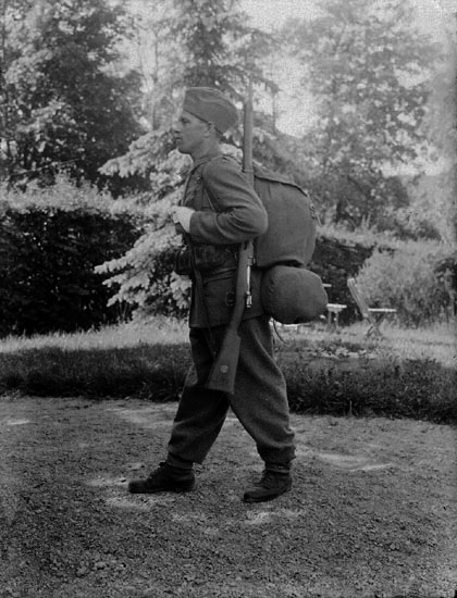 Enligt senare noteringar: "Man i uniform m. gevär m/96, trol. hemvärnsman." (BJ)