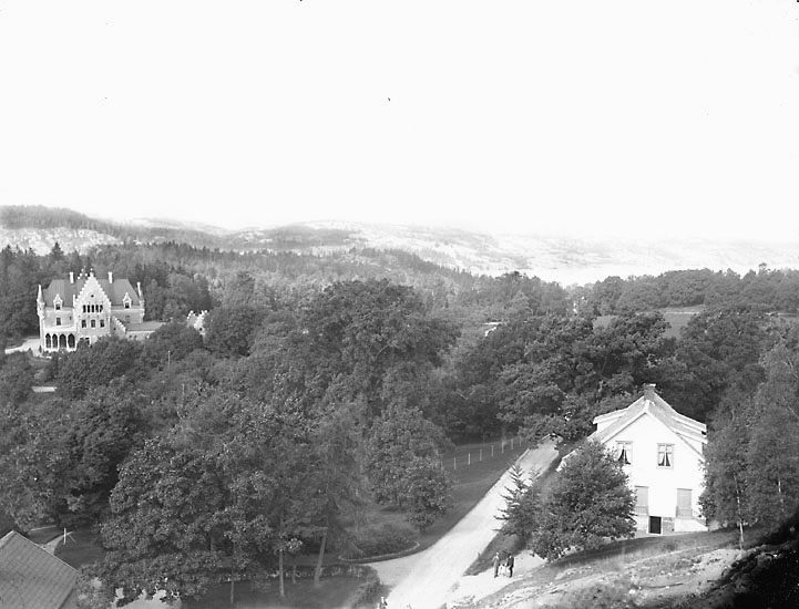 Enligt noteringar: "Slottet från Flaggberget. Till höger trädgårdsmästarbostaden." (BJ)