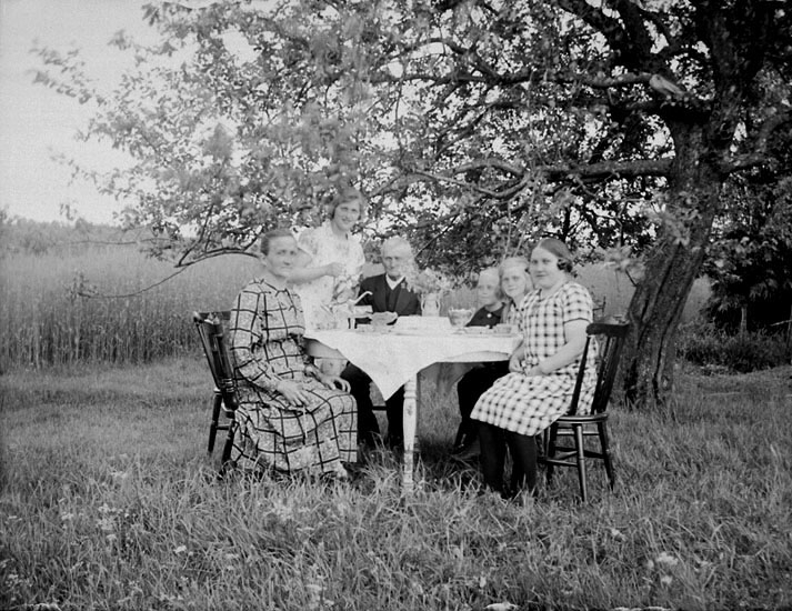 Salsmöblerna har burits ut i trädgården för en kaffestund.