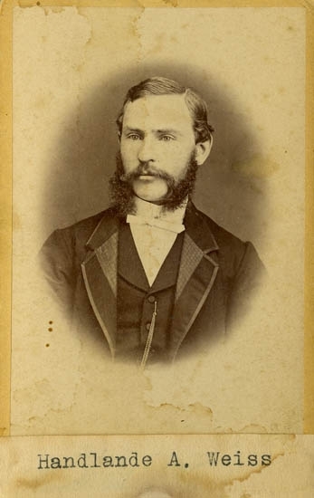 Text på kortets baksida: "Handlande Alfred Weiss, född 1840".