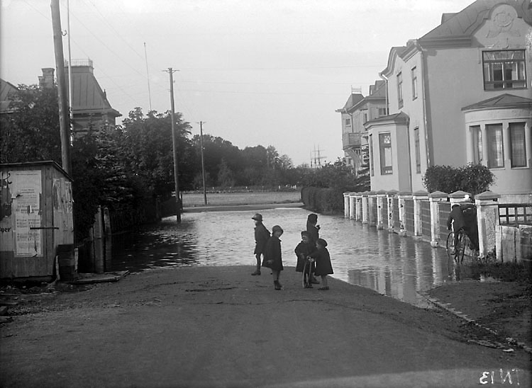 Enligt senare noteringar: "Översvämning i Uddevalla. Södertullsgatan. Lekande barn."