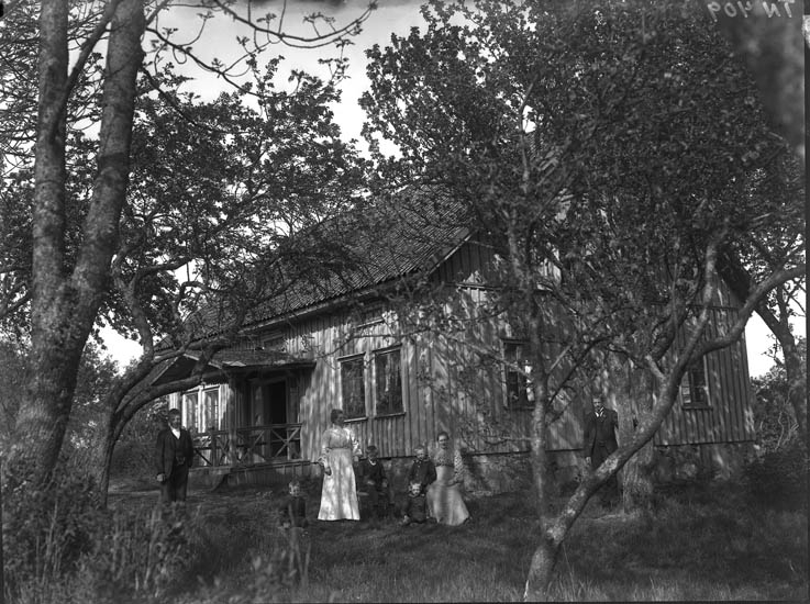 Enligt tidigare noteringar: "Manbyggnad i trädgård. Gårdens innvånare framför huset."