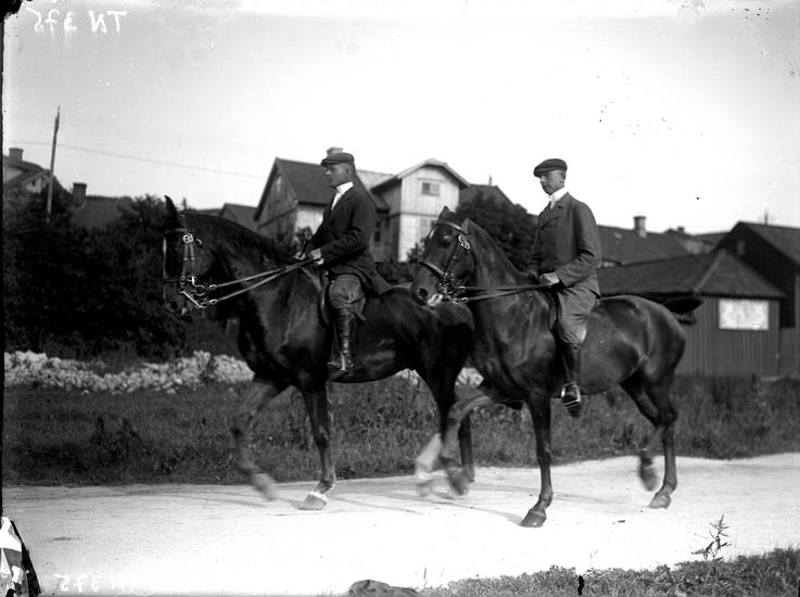 Enligt tidigare noteringar: "Ryttare, två män till häst."