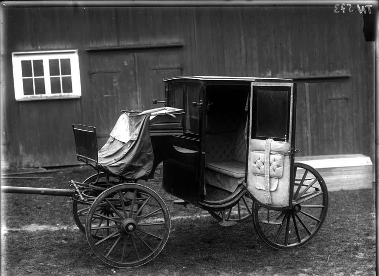 Enligt tidigare noteringar: "Hästvagn. Kupé med öppen dörr framför lada. Troligen Långehed, Munkedal. Vagnen förvaras nu hos Munkedals hembygdsförening, Kaserna."