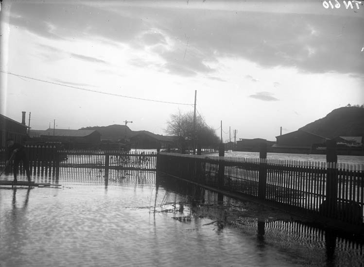 Enligt tidigare noteringar: "Översvämning i Uddevalla vid hamnbanestationen."