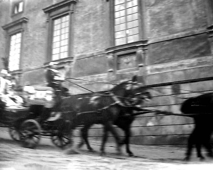 Enligt fotografens noteringar: "Kungen och Drottningen i vagn."