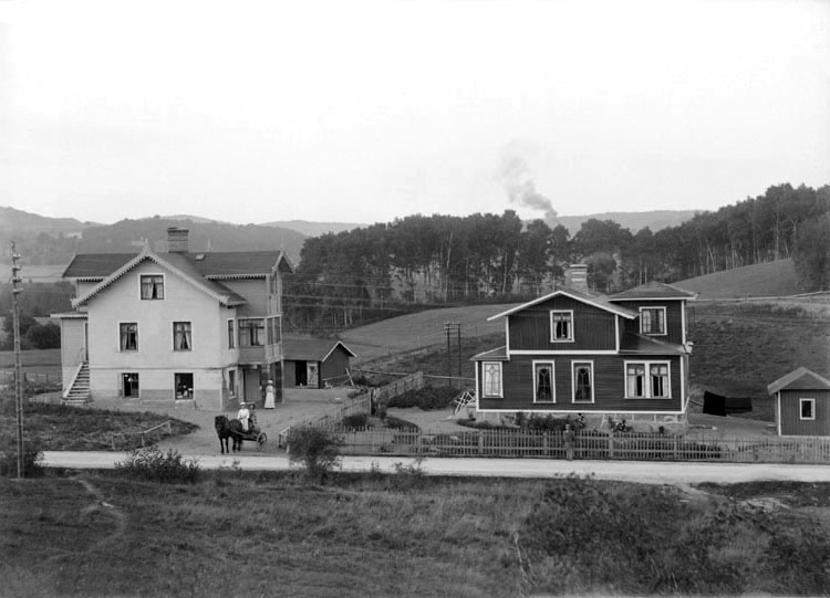 Enligt senare noteringar: "Handlare Viktor Ahlstrands hus och till höger ägarna, fröknarna Schiller. Numera optikaffär, respektive modebutik. Nuvarande adresser Strömstadsvägen 6 resp. 4.