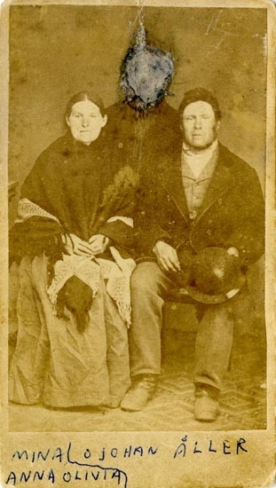 Text på Kortets framsida: Mina, Anna olivia o Johan Åller.