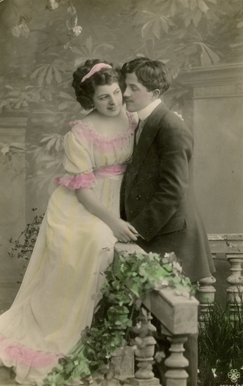 Postkort. Förälskat par förevigas i en fotoateljé