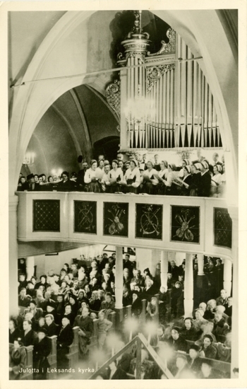 Notering på kortet: Julotta i Leksands kyrka.