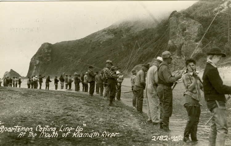Notering på kortet: Sportsmen Castina Line-up. At teh mouth of Klomath River.