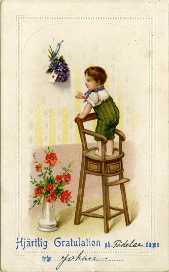 Notering på kortet: Hjärtlig Gratulation på födelsedagen från Johan.