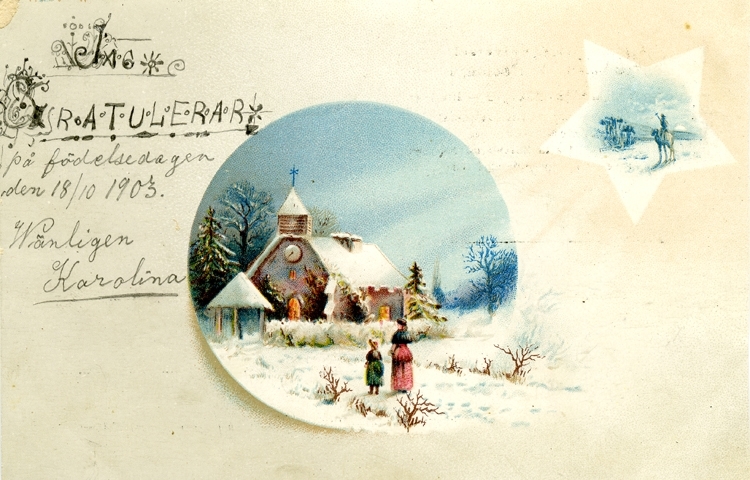 Notering på kortet: Jag Gratulerar på födelsedagen. Vänligen Karolina.