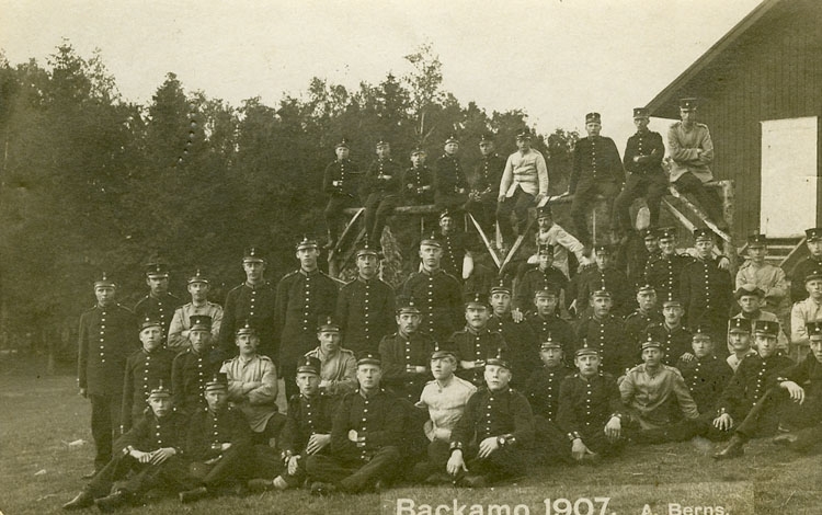 Enligt Bengt Lundins noteringar: "Gruppbild vid hinderbanan".