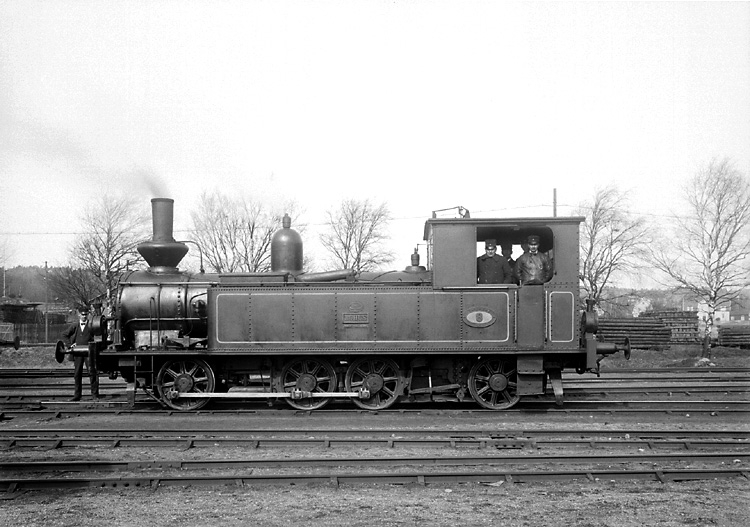 "UVHJ:s ånglokomotiv nr. 8 "Bohus" på bangården i Uddevalla."