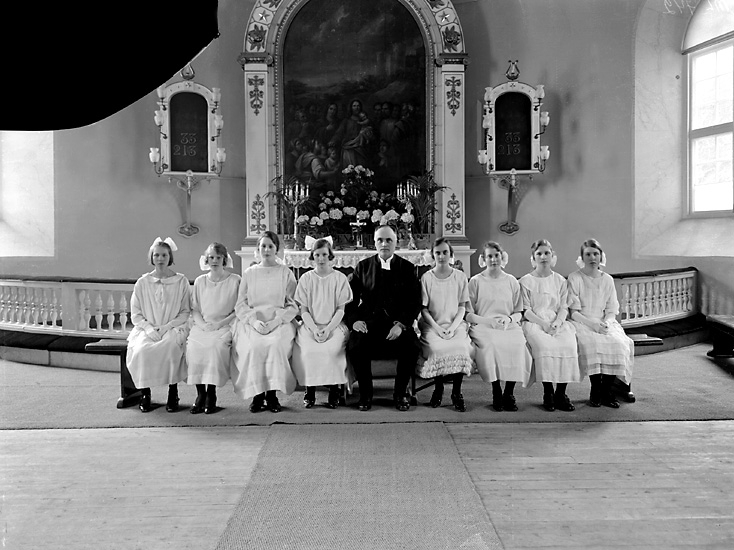 Enligt tidigare notering: "Konfirmander och kyrkohedern Bogren."