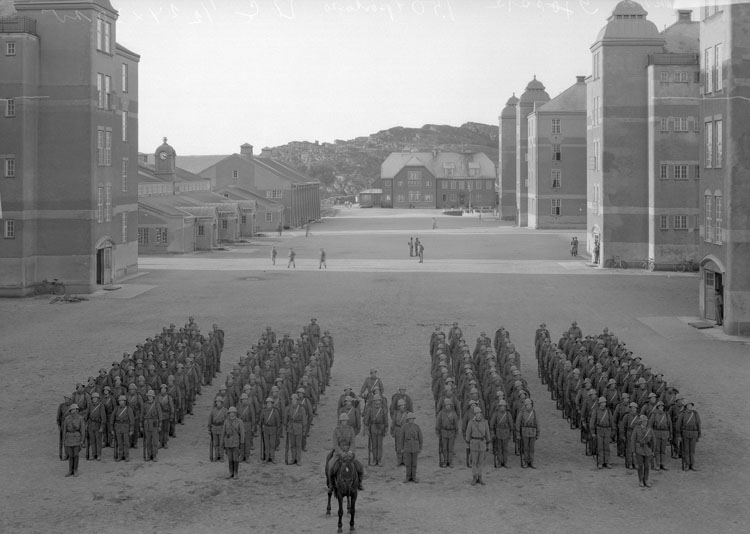 Uppgift enligt fotografen: "Uddevalla. I 17 kaserngård I: komp. Kapten Flodén."
