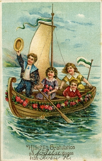 Notering på kortet: Hjärtlig Gratulation på födelsedagen från Rosa H.