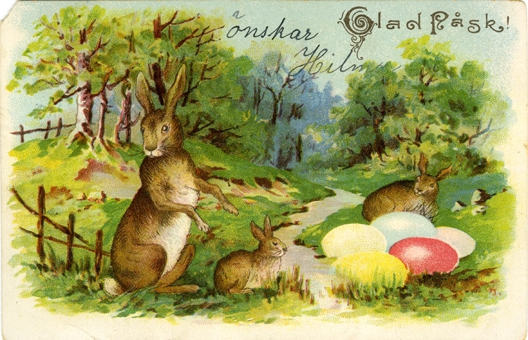 Notering på kortet: Glad Påsk önskar Hilma.