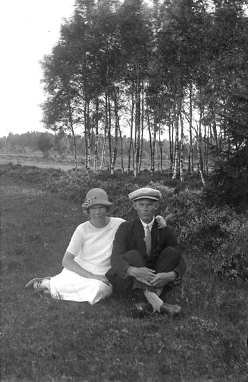 Ett par sitter intill varandra på marken