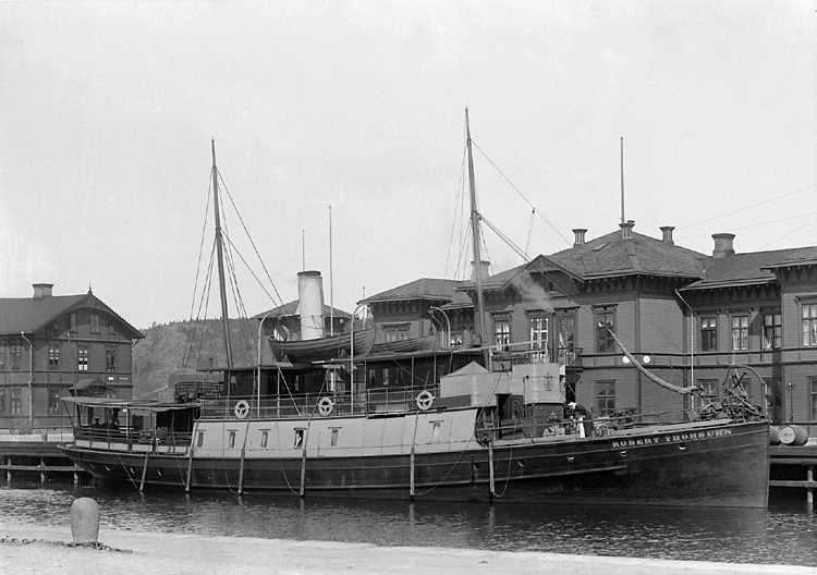 Enligt tidigare notering: "Skärgårdsångaren "Robert Thorburn" i Uddevalla hamn framför Herrljungabanans station."