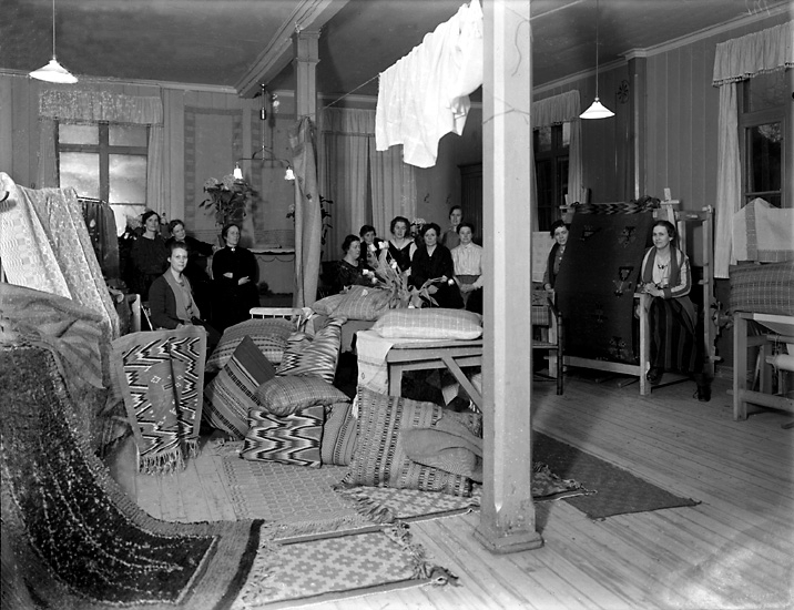 Enligt tidigare notering: "Interiör, vävskola. Utställning av textilier"