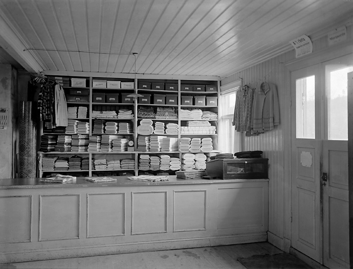 Enligt tidigare notering: "Interiör från kooperativa butik, textilavdelningen."