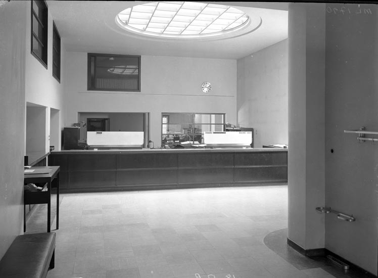 Uppgift enligt fotografen: "Uddevalla. Interiör. Sparbanken. Juli 1935."