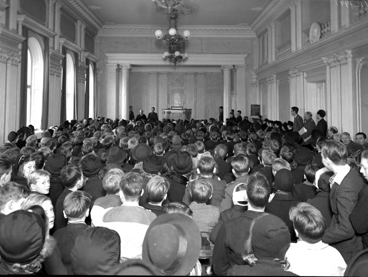 Uppgift enligt fotografen: "Uddevalla. Skolan. Aulan. för Sv. Journalen."