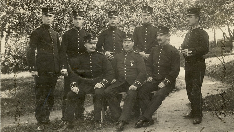 Enligt Bengt Lundins noteringar: "Åtta man utanför fotoateljen".