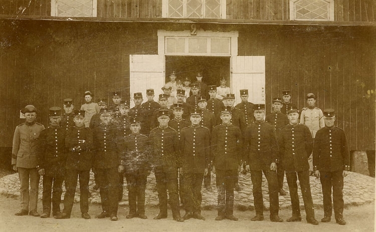 Enligt Bengt Lundins noteringar: "Grupp framför 2:a manskapsbaracken".