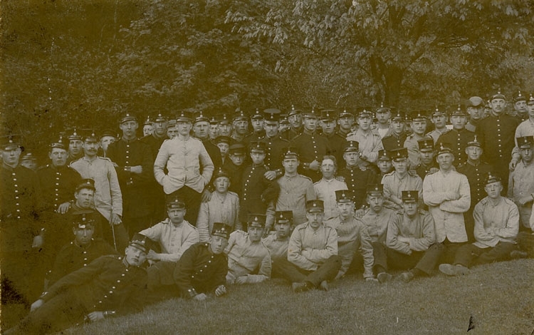 Enligt Bengt Lundins noteringar: "Gruppbild under träd".