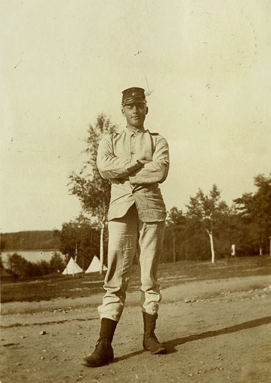 Enligt Bengt Lundins noteringar: "Man i grötmundering, med Grinnerödssjön i bakgrunden".