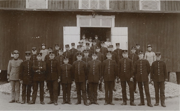 Enligt Bengt Lundins noteringar: "Grupp framför 2:a manskapsbaracken".