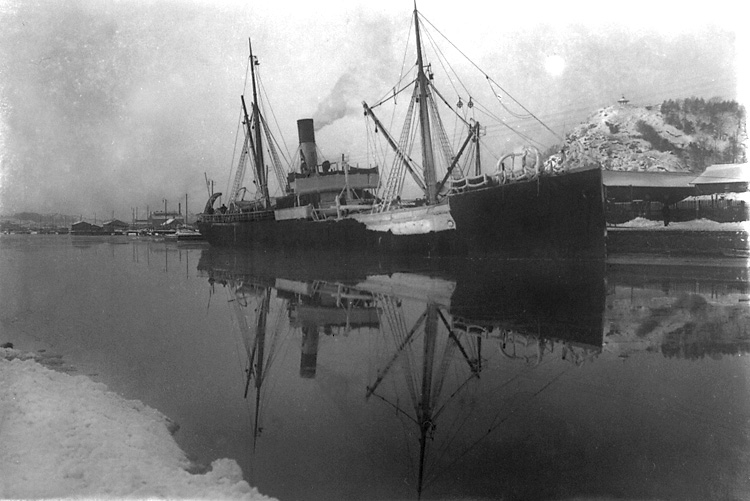 Enligt tidigare noteringar: "Vinterbild. Ångare i hamnen Uddevalla."