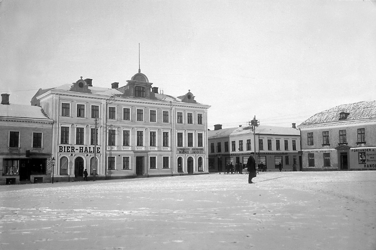 Enligt tidigare noteringar: "Kungstorget i Uddevalla nordvästra hörnet med ölhall järnhandel."
