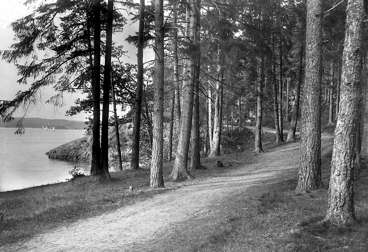 Enligt tidigare noteringar: "Parti av strandvägen Gustafsberg-Lindesnäs, från Lindesnäs- hållet."