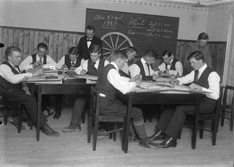 Enligt noteringar: "23 april 1924. Teorigrupp, Nordbergska stiftelsens slöjdskola. Läraren kan vara Algot Carlsson." (BJ)