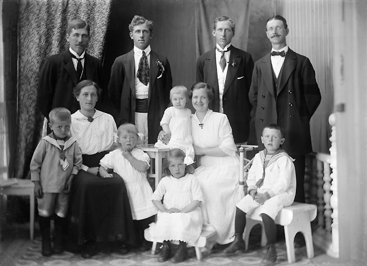Viktor Smith med släktingar. Släkten Smith var stor och många medlemmar har varit anställda vid Munkedals järnväg." (BJ)