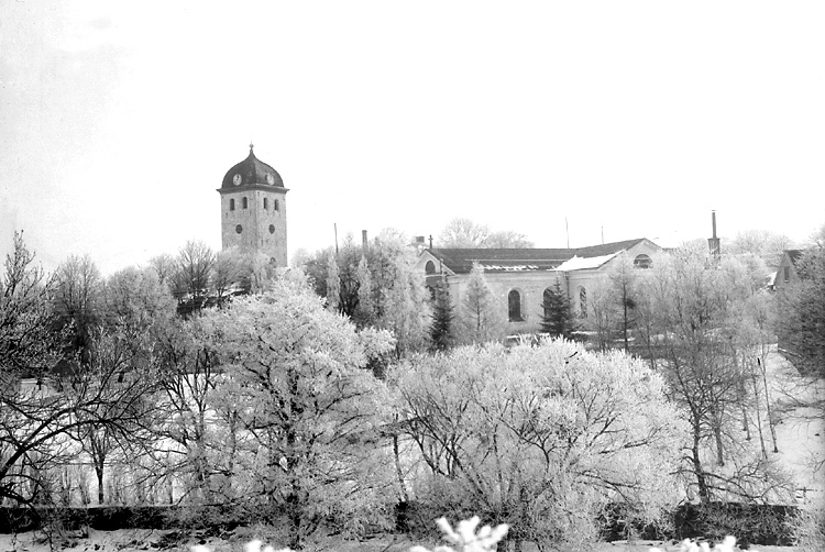 Enligt tidigare notering: "Vinterbild, kyrkan och klocktornet från sydväst."