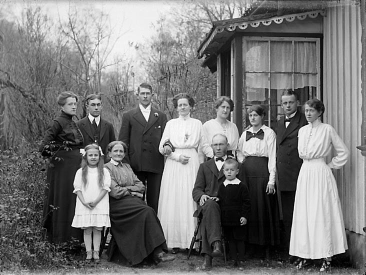 Enligt senare noteringar: "Familjegrupp utanför hus, någonstans utanför Munkedal."