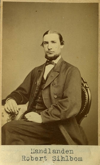 Text på kortets baksida: "Handlanden Robert Sihlbom,f 1842".