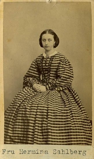 Text på kortets baksida: "Fru Hermina Sahlberg, f. Wessman. Född 1846".